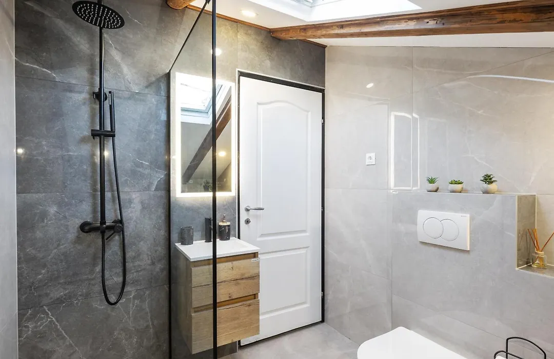 The bathroom in the apartment is equipped with dryers, providing added comfort for guests. Furthermore, a bathtub is available.